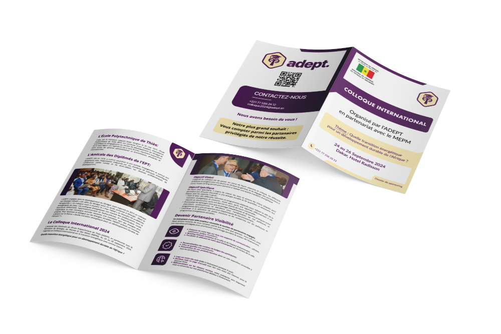 Le dépliant de l’ADEPT valorise les offres de sponsoring, en présentant l’histoire de l’École Polytechnique de Thiès et l’engagement d…