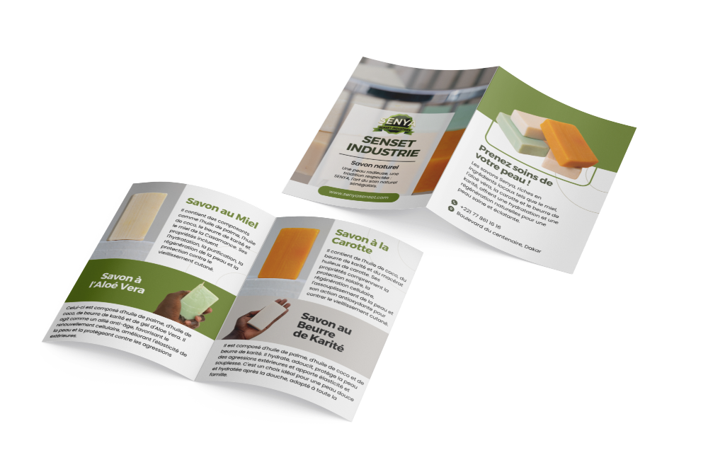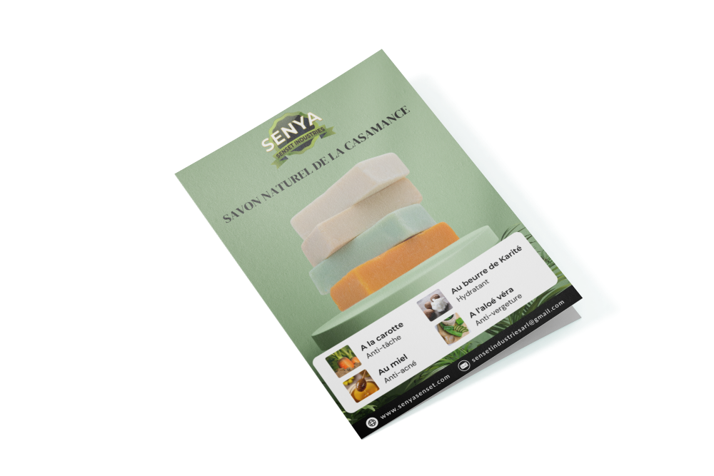 La plaquette de Senya présente l’entreprise spécialisée dans la production de savon naturel au Sénégal, mettant l’accent sur …