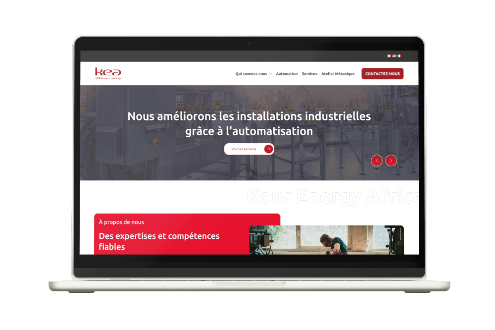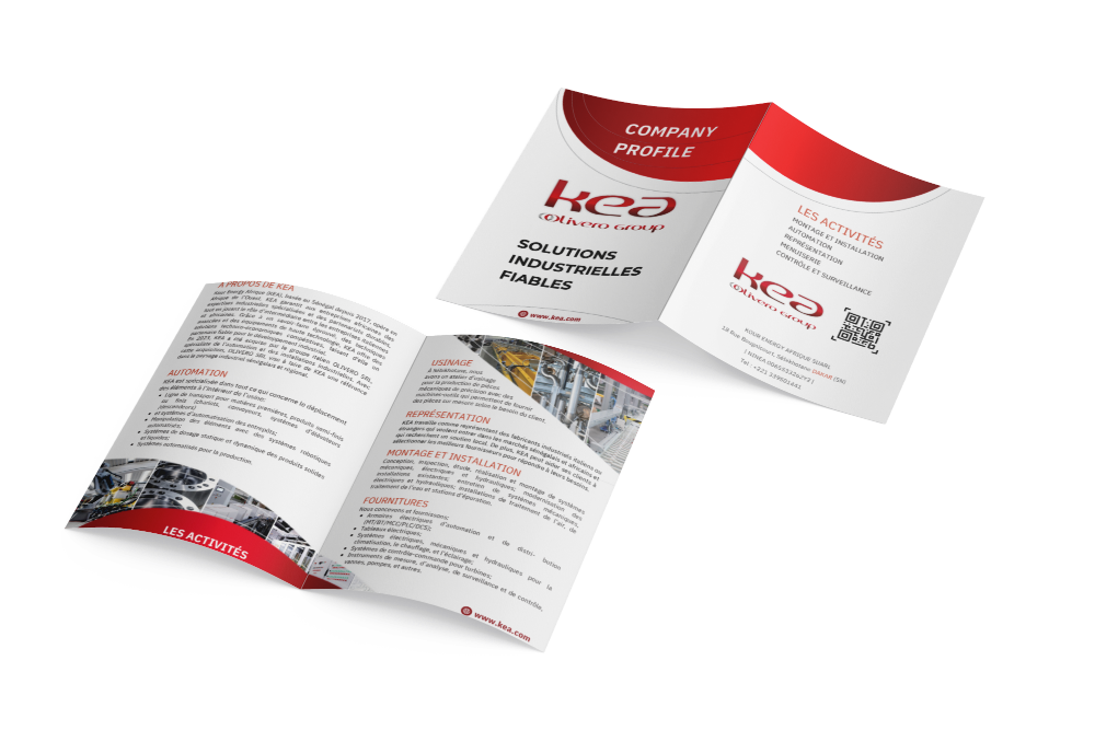 La plaquette de KEA présente leurs services clés : automatisation industrielle, maintenance technique et partenariats internationaux….