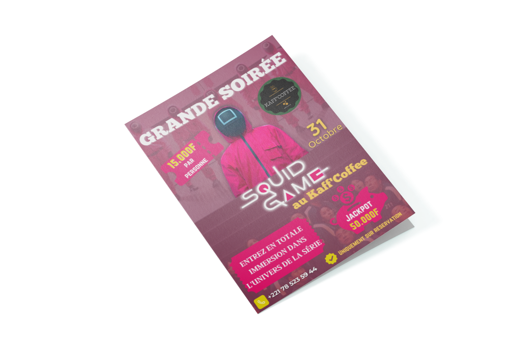 L’affiche pour la soirée “Squid Game” de Kaff Coffee a capté l’essence de l’événement avec un design percutant…