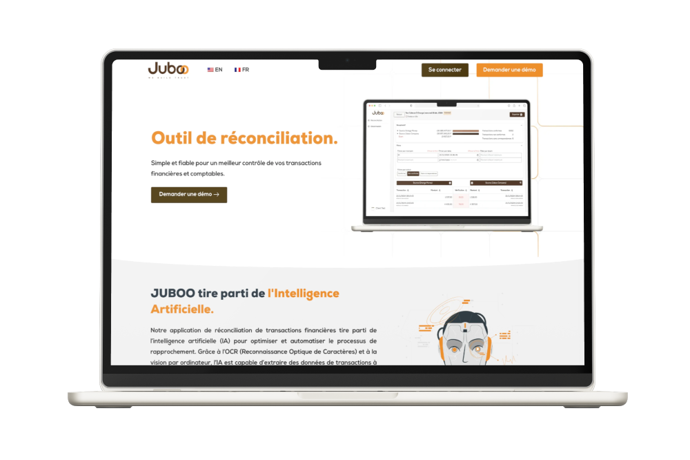 Le site de Juboo présente une solution intelligente de réconciliation financière basée sur l’intelligence artificielle. Avec une interface intuitive, il permet aux entreprises d’automatiser le traitement de leurs transactions grâce à la technologies OCR, offrant une interopérabilité et une simplicité d’utilisation remarquables.