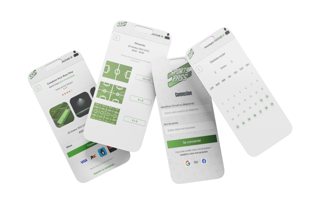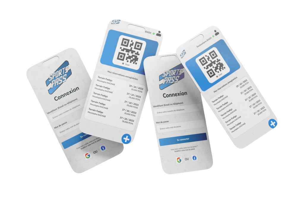 Le logo de Sportspass intègre les initiales “SP” dans un design évoquant un ticket, symbolisant la réservation de terrains de sport…
