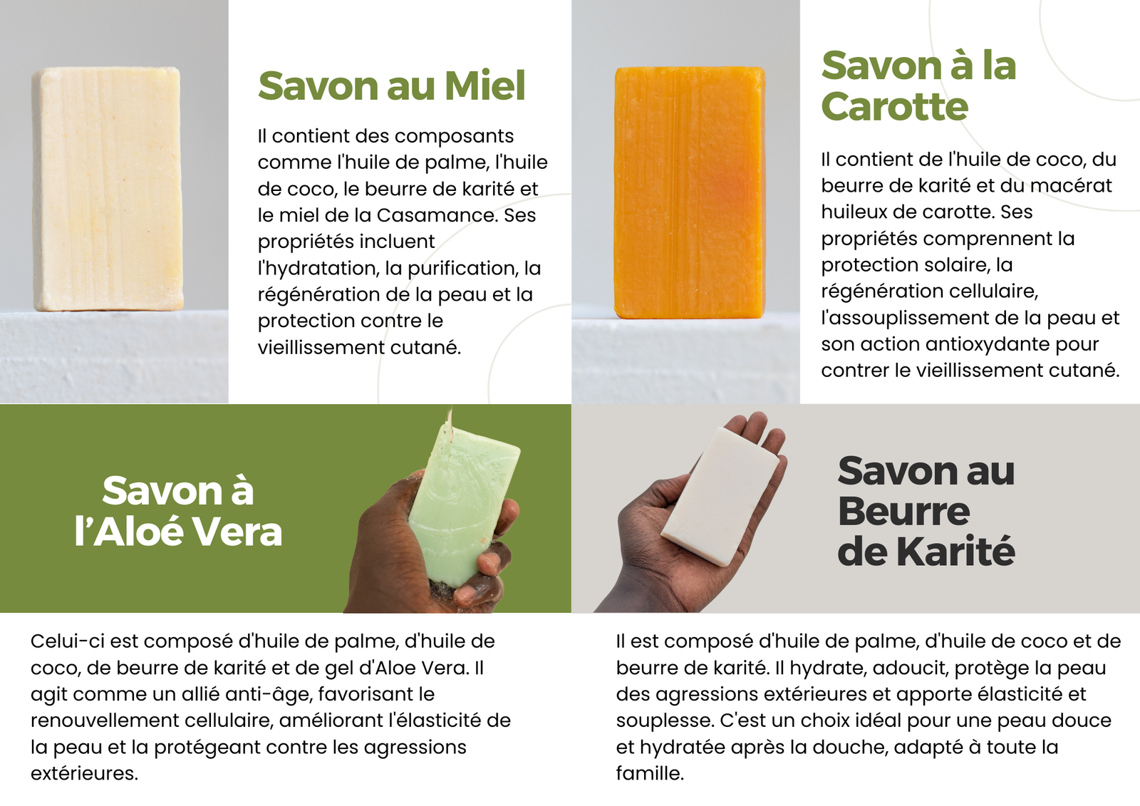 La plaquette de Senya présente l’entreprise spécialisée dans la production de savon naturel au Sénégal, mettant l’accent sur ses ingrédients locaux et ses méthodes artisanales. Elle illustre les valeurs de qualité et de durabilité, tout en mettant en avant les diverses gammes de produits, attirant ainsi les clients soucieux d’authenticité.